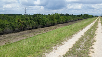 I arrived at the first parking area approximately 9:37 AM. The temperature was 86 partly sunny and with high humidity. My riding was from west to east thru sections 1, 2 and thru part of section 3. Halfway thru section 3, the levee turns north. The rest of section 3 and part of section 4 is north. the last part of section 4 turns back to the west and dead-ends into a warehouse area. This was a long ride because of my many photo stops.
